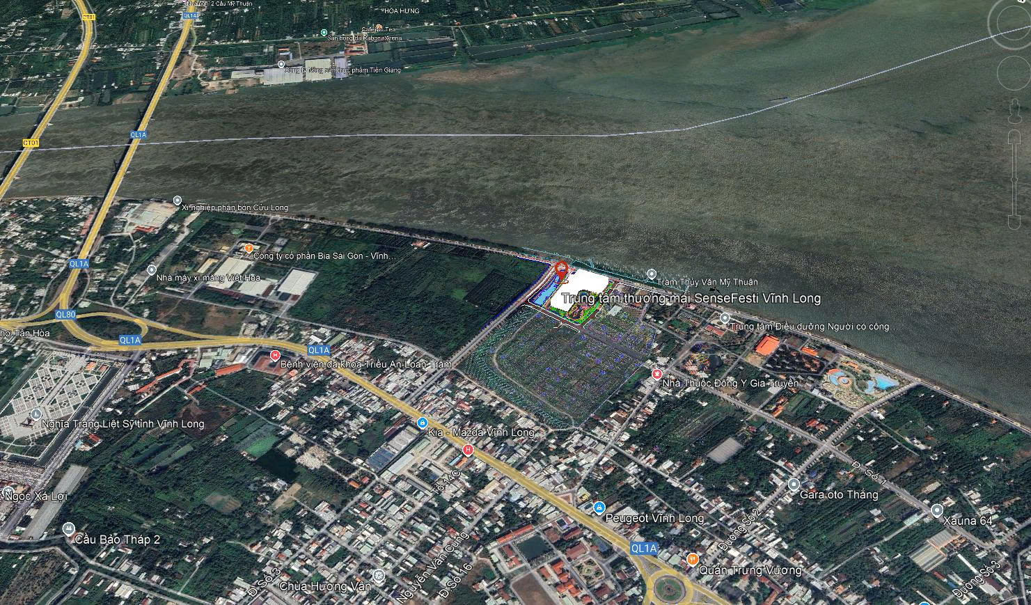 Dự án nằm trên trục đường Tân Vĩnh Thuận, ngay cửa ngõ khu hành chính mới của tỉnh, giữa hai cây cầu trọng điểm Mỹ Thuận 1 và Mỹ Thuận 2, đồng thời liền kề tuyến cao tốc TP HCM – Cần Thơ. Vị trí này không chỉ thuận tiện kết nối giao thông mà còn sở hữu lợi thế phong thủy khi nằm cạnh dòng Cổ Chiên thơ mộng, mang đến giá trị cảnh quan và không gian sống lý tưởng.